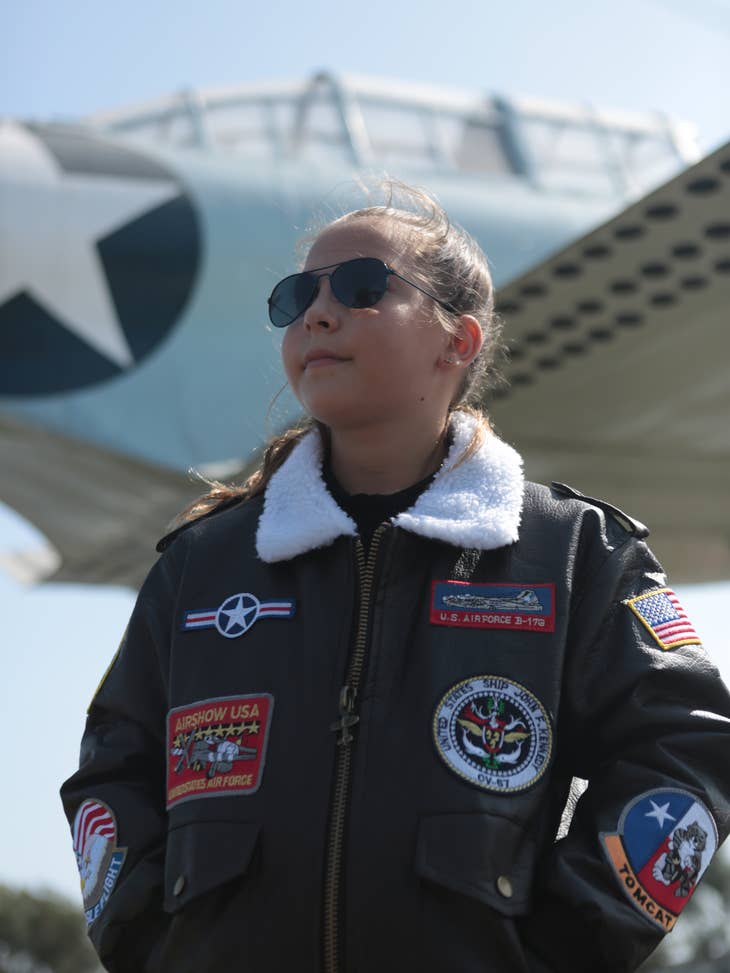 This scaled-down version of the classic aviator jacket is just right for young flight fans!